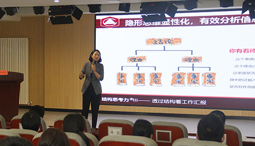 “思考是人類最大的樂趣”。為提高員工思考和表達能力,建立彼此交流時共同的思維和語言平臺,提高組織溝通效率,10月23日,集團邀請楊秀萍老師為鄭地英才班講授《透過結構看工作匯報》,集團總部及子公司共150余名員工參加。