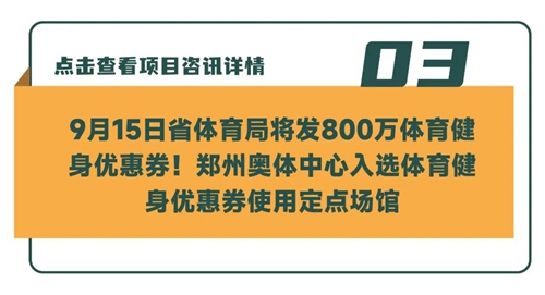省體育局將于9月15日開始發(fā)放體育健身優(yōu)惠券!每周一、四發(fā)放,截止12月底。優(yōu)惠券設(shè)置10元、15元、20元、25元、50元五種面額,50元面額優(yōu)惠券適用于足球、籃球、排球等集體項(xiàng)目及特殊人群(殘疾人)。您可通過手機(jī)下載“豫動中原”APP或微信“豫動中原”小程序,詳細(xì)了解申領(lǐng)及使用細(xì)節(jié)。體育健身優(yōu)惠劵的發(fā)放,是省體育局認(rèn)真貫徹全民健身國家戰(zhàn)略的具體舉措,在鼓勵(lì)居民參加體育健身的同時(shí),將促進(jìn)帶動體育消費(fèi),也為河南省體育事業(yè)發(fā)展增添了活力。