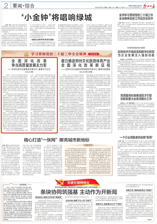 “黨的二十屆三中全會把深化國企改革納入進(jìn)一步全面深化改革戰(zhàn)略、推進(jìn)中國式現(xiàn)代化全局,為國有企業(yè)在新征程上改革轉(zhuǎn)型指明了前進(jìn)方向,明確了工作重點(diǎn)。”鄭州城市發(fā)展集團(tuán)有限公司黨委書記、董事長萬永生表示,城發(fā)集團(tuán)將以習(xí)近平總書記關(guān)于全面深化改革的一系列新思想、新觀點(diǎn)、新論斷和全會精神為指導(dǎo),通過戰(zhàn)略性重組和專業(yè)化整合,苦練“內(nèi)功”,筑強(qiáng)“筋骨”,爭當(dāng)中國式現(xiàn)代化建設(shè)鄭州實(shí)踐的主力軍。