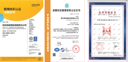 喜報!鄭房測繪公司獲評三項體系認證和省級AAA信用等級