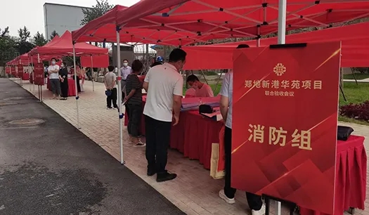 鄭地新港華苑項(xiàng)目于2021年8月26日下午,順利完成由鄭州市城建局牽頭組織,人防、消防、質(zhì)監(jiān)、規(guī)劃等部門共同參與的聯(lián)合驗(yàn)收,是疫情期間第一個(gè)通過(guò)聯(lián)合驗(yàn)收的建設(shè)項(xiàng)目。為嚴(yán)格落實(shí)鄭州市新冠肺炎疫情的防控要求,新港華苑項(xiàng)目部提前制定了周密的疫情防控方案,采取了妥善的疫情防控措施,有序組織進(jìn)入院區(qū)人員掃健康碼、檢查48小時(shí)核酸檢測(cè)結(jié)果、測(cè)量體溫、酒精消殺、分發(fā)防疫包等。經(jīng)過(guò)啟動(dòng)儀式、書(shū)面匯報(bào)、現(xiàn)場(chǎng)巡查、聯(lián)動(dòng)測(cè)試等環(huán)節(jié),鄭地新港華苑項(xiàng)目順利完成聯(lián)合驗(yàn)收工作。