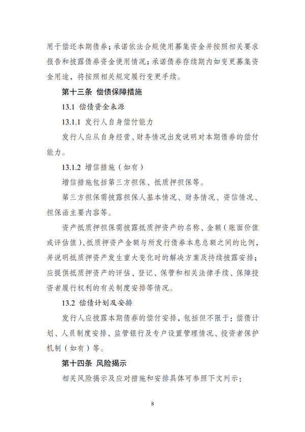 (二)發(fā)行人應(yīng)按照監(jiān)管部門和交易場所的規(guī)定,在存續(xù)期內(nèi)定期披露財務(wù)情況、經(jīng)營情況、募集資金使用情況、項目進(jìn)展情況等相關(guān)信息。如存續(xù)期內(nèi)變更募集資金用途或發(fā)生其他對債券持有人權(quán)益有重大影響的事項,應(yīng)符合相關(guān)法律法規(guī)和政策要求,按照有關(guān)規(guī)定或約定履行程序,并及時公告。